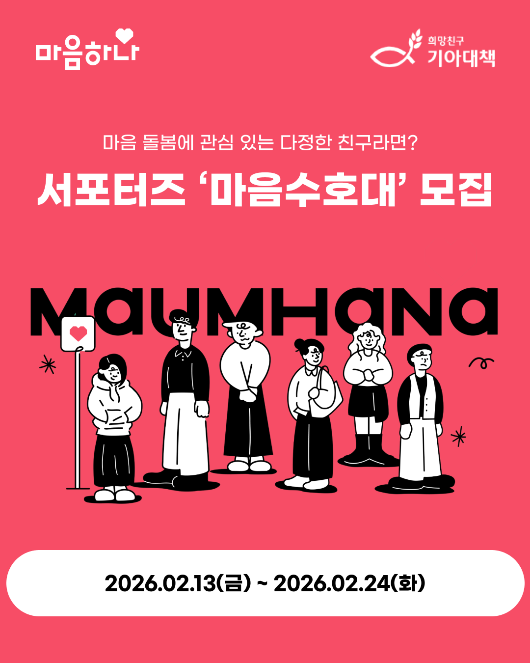 마음하나에 털어놓고 응원, 위로, 도움을 받아보세요.