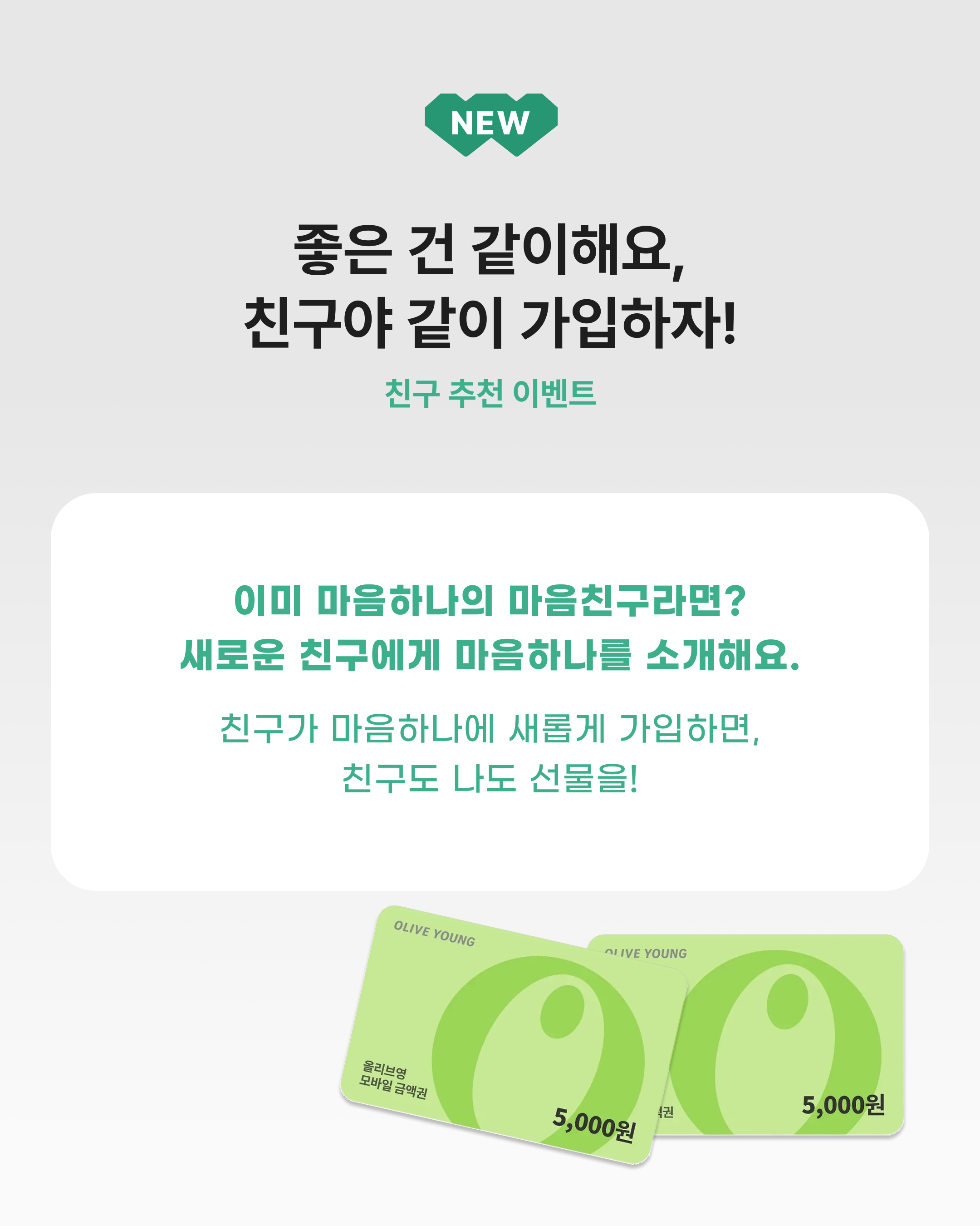 참여 방법 :  1. 친구에게 마음하나를 추천하고 가입을 유도해요.